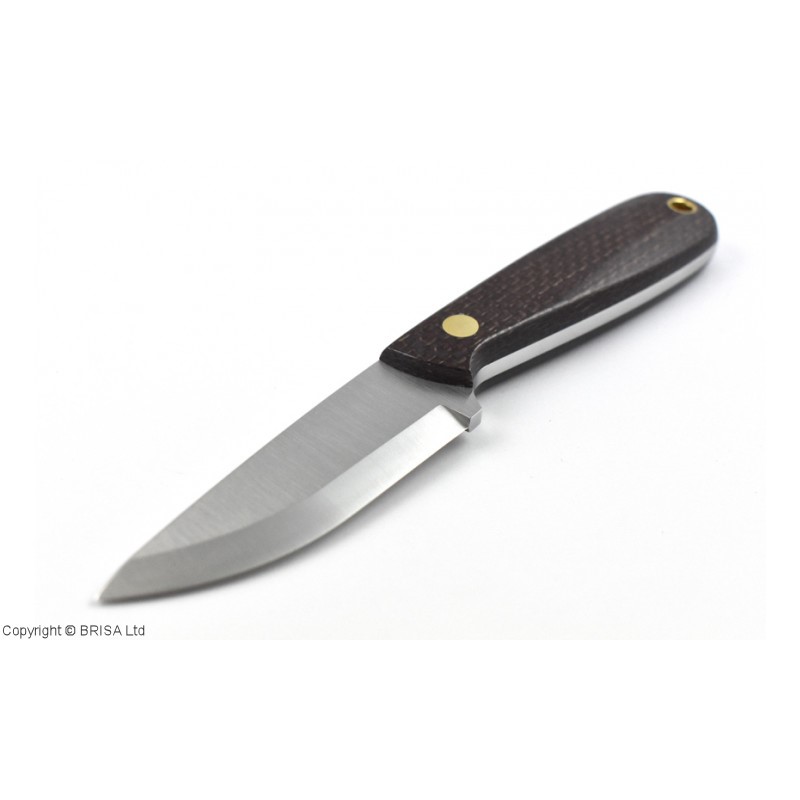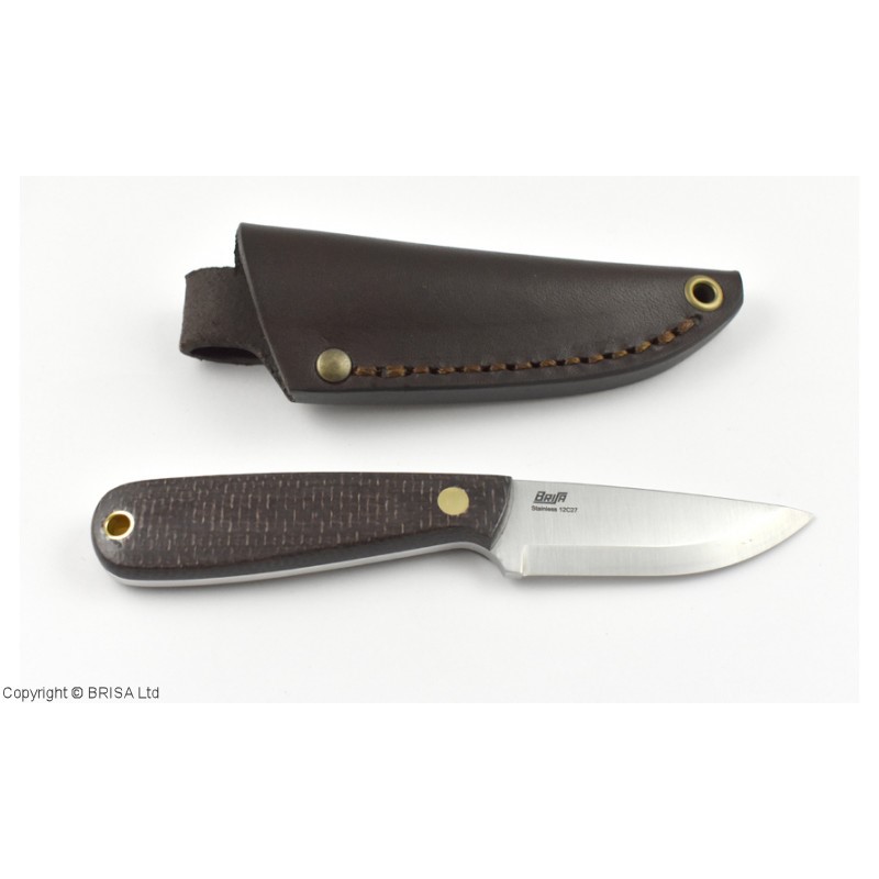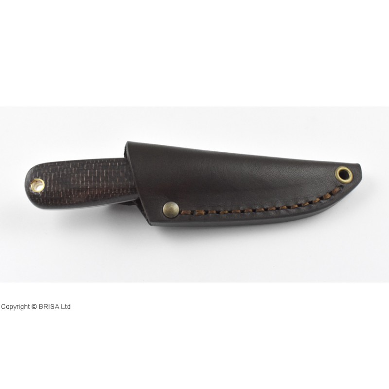 Brisa Necker 70 kniv med Scandi-profil blad i Sandvik 12c27 stål. Slire i høykvalitets spansk lær. Bison Micarta håndtak.